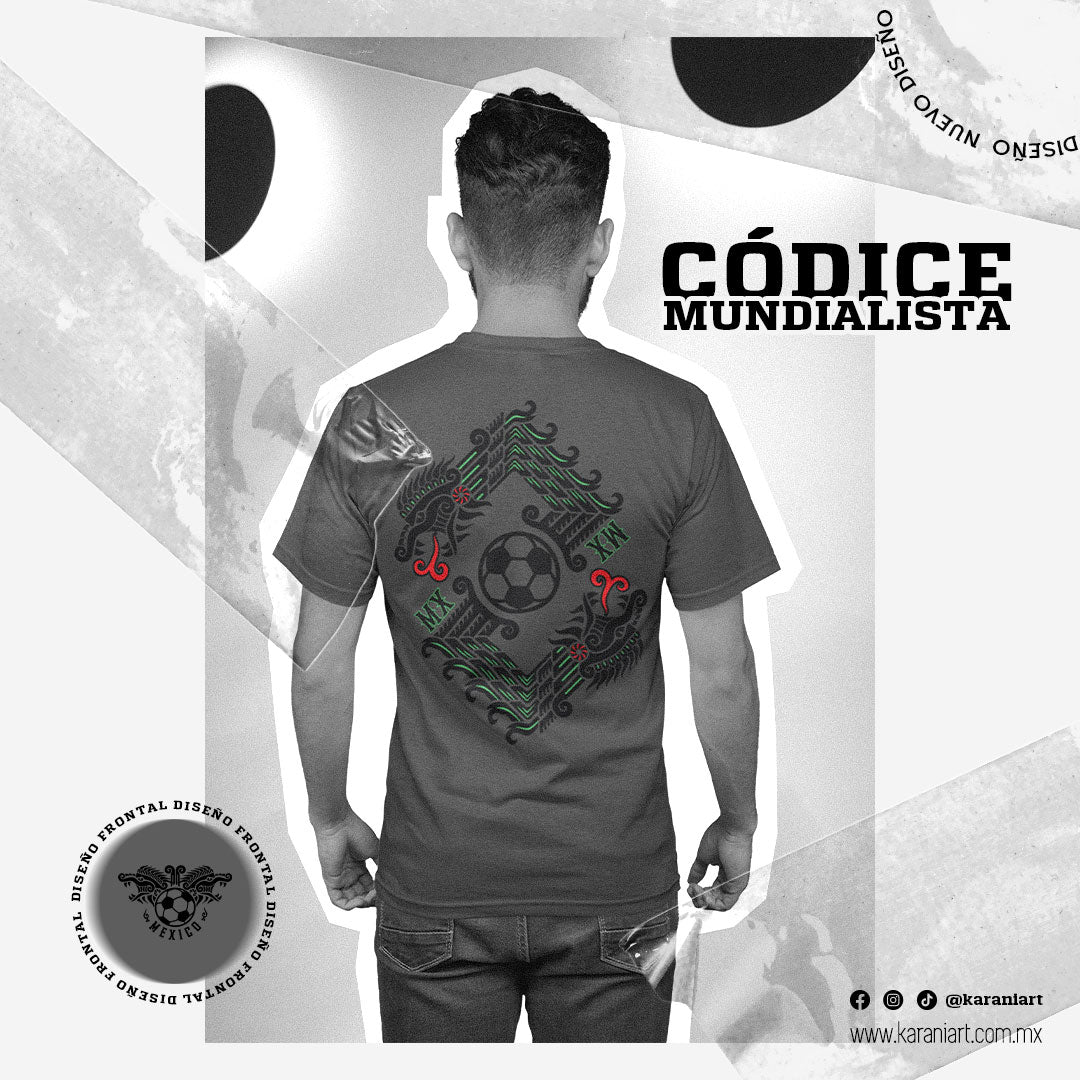 Playera Ajolote Mundialista inspirada en el símbolo mexicano de resiliencia. Arte que fusiona fútbol, cultura y diseño único de Karani Art.
