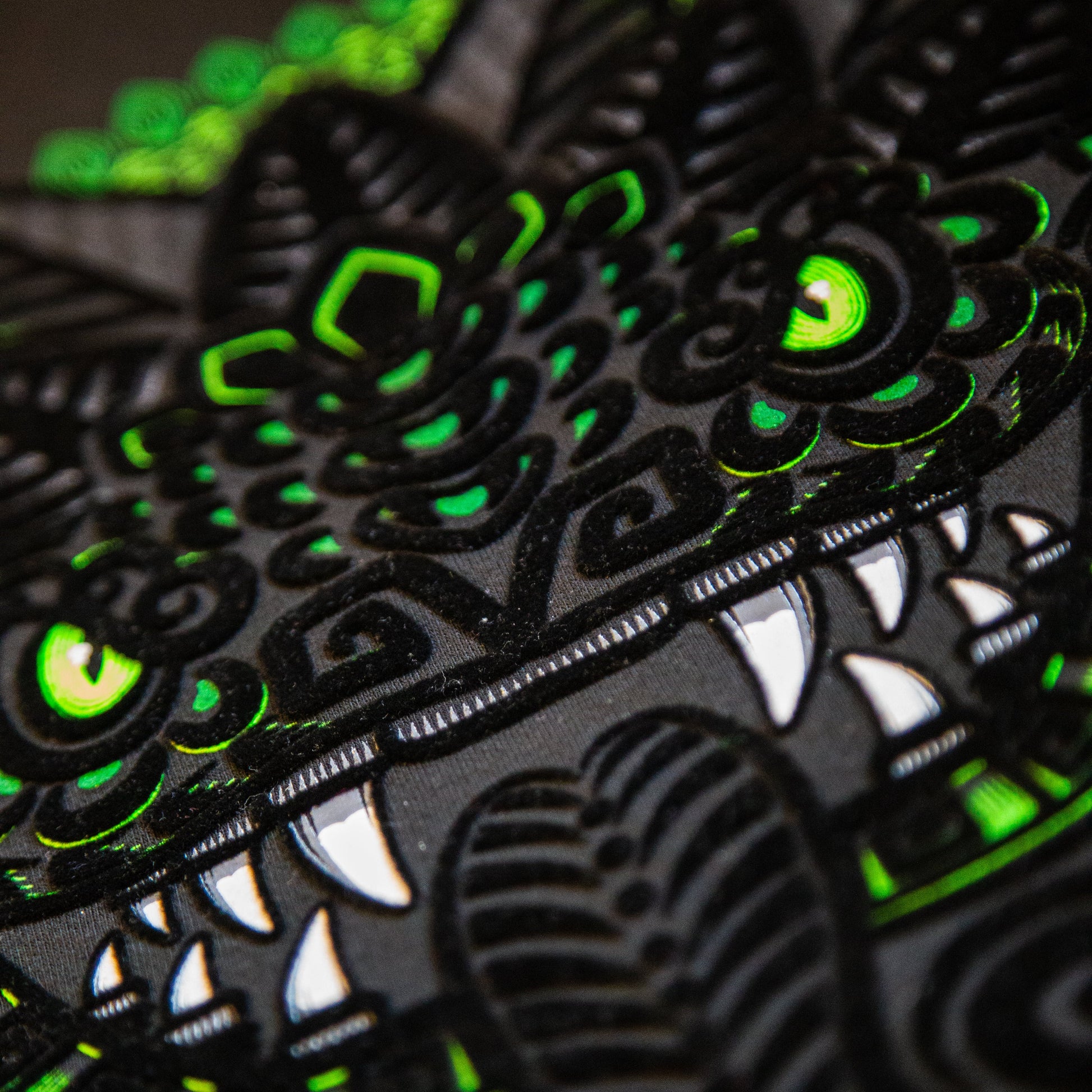 La sudadera Kukulkán rinde homenaje a una de las figuras más poderosas de la cosmovisión mesoamericana. Su diseño cobra vida sobre una sudadera negra que refuerza su carácter místico y atemporal. Elaborada en 100% poliéster, brinda ligereza, durabilidad y confort para el uso diario. La técnica flock añade relieve y una textura suave que resalta cada detalle del diseño, creando una pieza sofisticada que fusiona tradición y estilo contemporáneo.